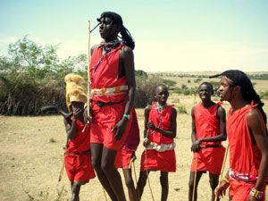 民族衣装を身に纏った、黒人の家族が目にするもの目にするものに口をポカンと開けて、驚嘆の声を上げます。